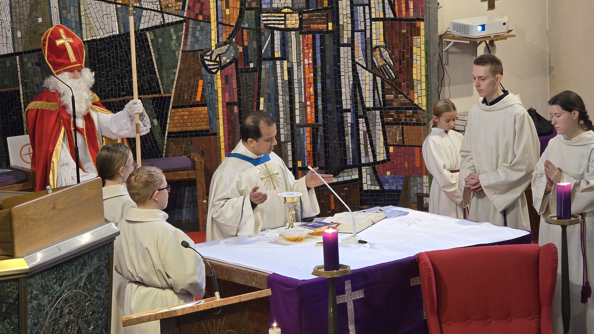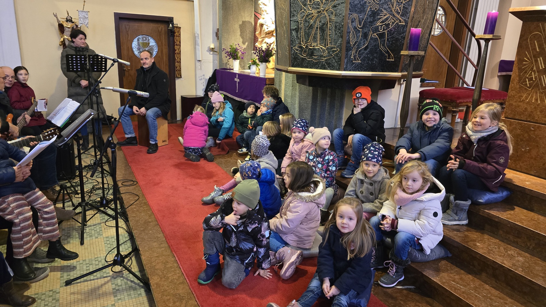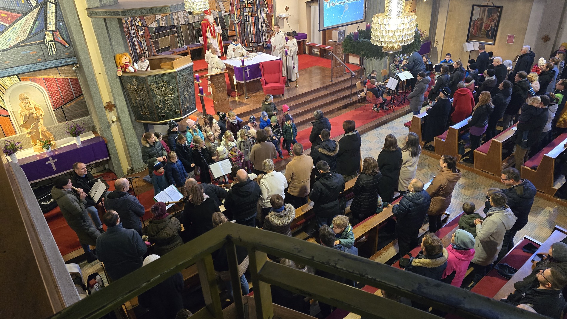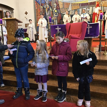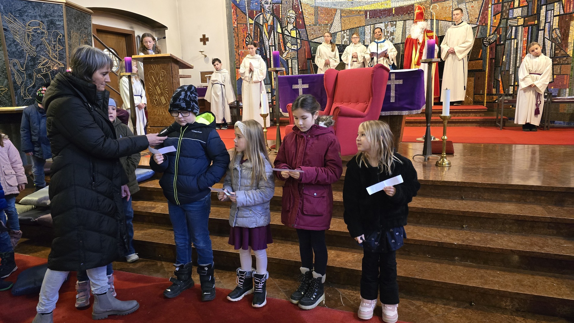 Zu Maria Empfängnis durften wir wieder die strahlenden Kinderaugen sehen, wenn der Nikolaus durch die Kirche schreitet. Auf seinem roten Sessel nahm er Platz und erzählte abwechselnd mit unserem Diakon „Didi“ den Kindern von seinen Taten. Die Kinder konnten diesmal ganz nah beim ihm sitzen und seinen Erzählungen lauschen. Im Anschluss an den Gottesdienst freuten sich die Kinder und auch die Landjugend über einen Schokonikolaus. Die Landjugend versorgte die Messbesucher nach den Messen mit Tee und Würsteln.