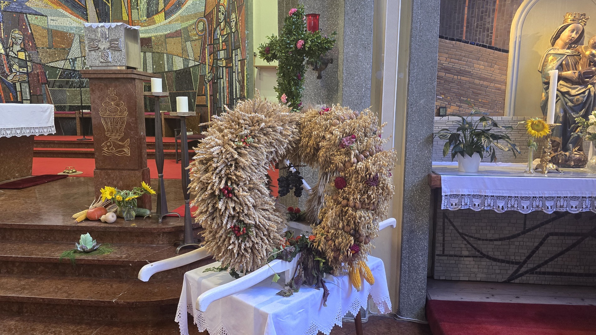 In unserer Pfarre feierten wir am 22. September als „Dank für die Frucht der Erde und der menschlichen Arbeit“ mit Generalvikar Christoph Weiss eine Familienmesse und das Erntedankfest. Damit wollten wir den Dank über Gottes Fürsorge zum Ausdruck bringen.