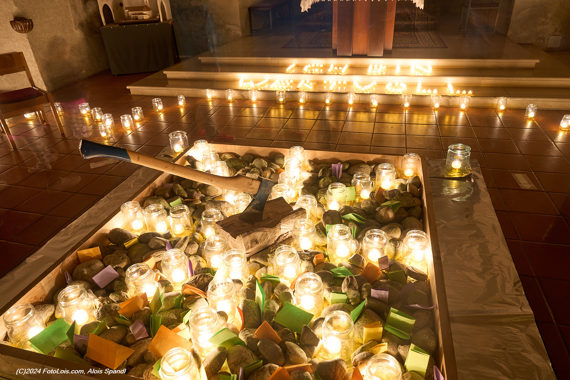 Als Einstimmung wurde bereits der Weg zur Kirche beleuchtet und mit dem Labyrinth konnten sich die Kinder während der Wartezeit einstweilen die Zeit vertreiben.