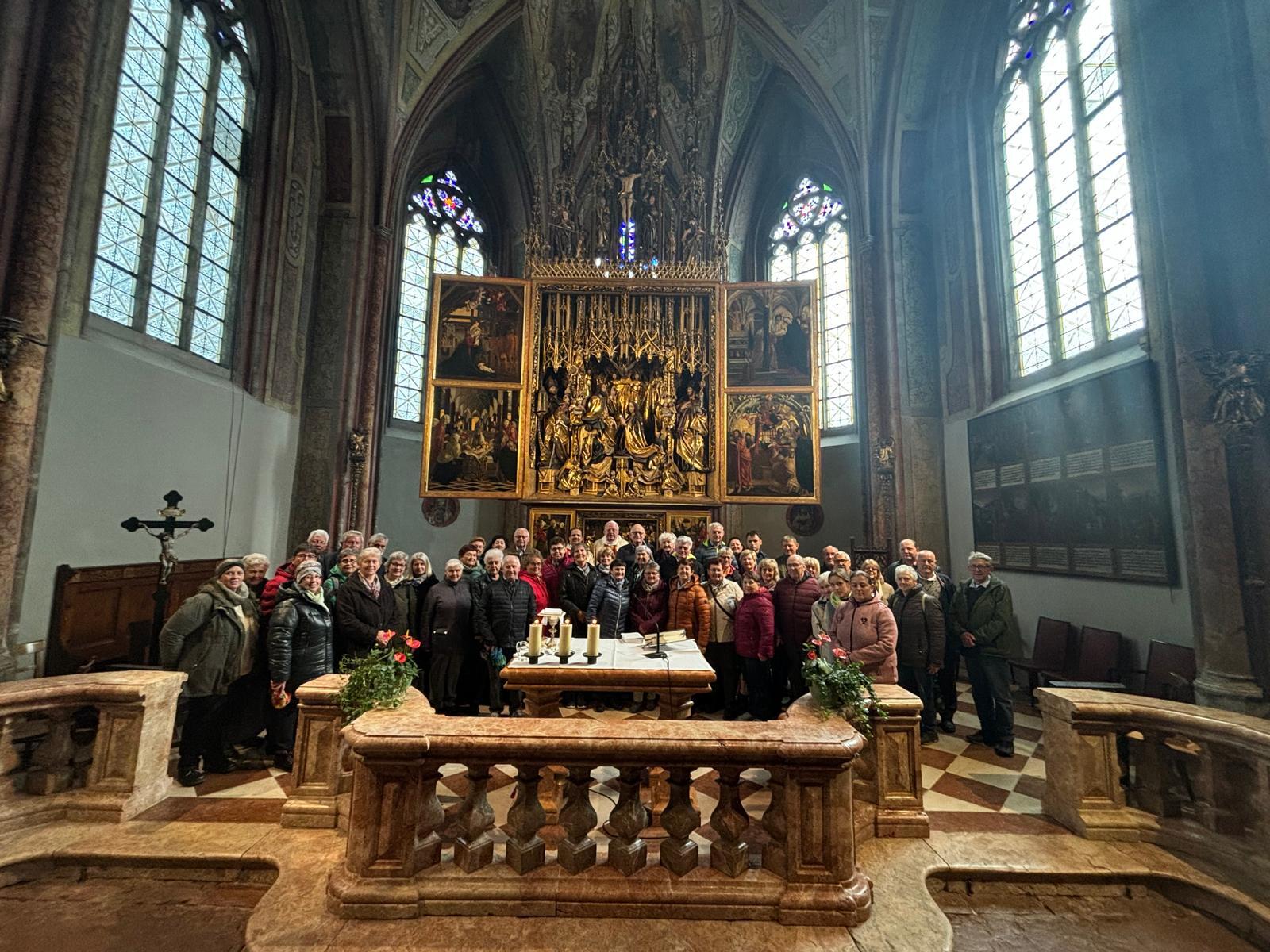 Unsere erste Station war die Pfarrkirche St. Wolfgang, in der wir mit Monsignore Franz Dammerer die Hl. Messe feierten.
