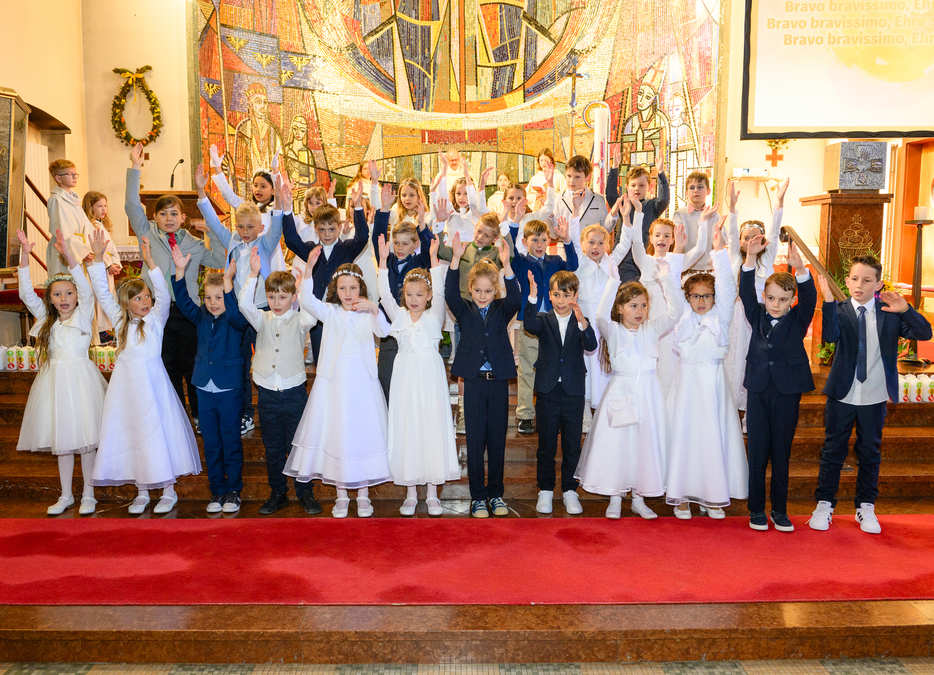 Für alle Beteiligten – Kinder, Eltern, Angehörige und die gesamte Gemeinde – war dieser Tag ein besonderes Erlebnis. Die Freude über die erste heilige Kommunion, das liebevolle Miteinander machten diesen Tag zu einem ganz besonderen Fest des Glaubens.