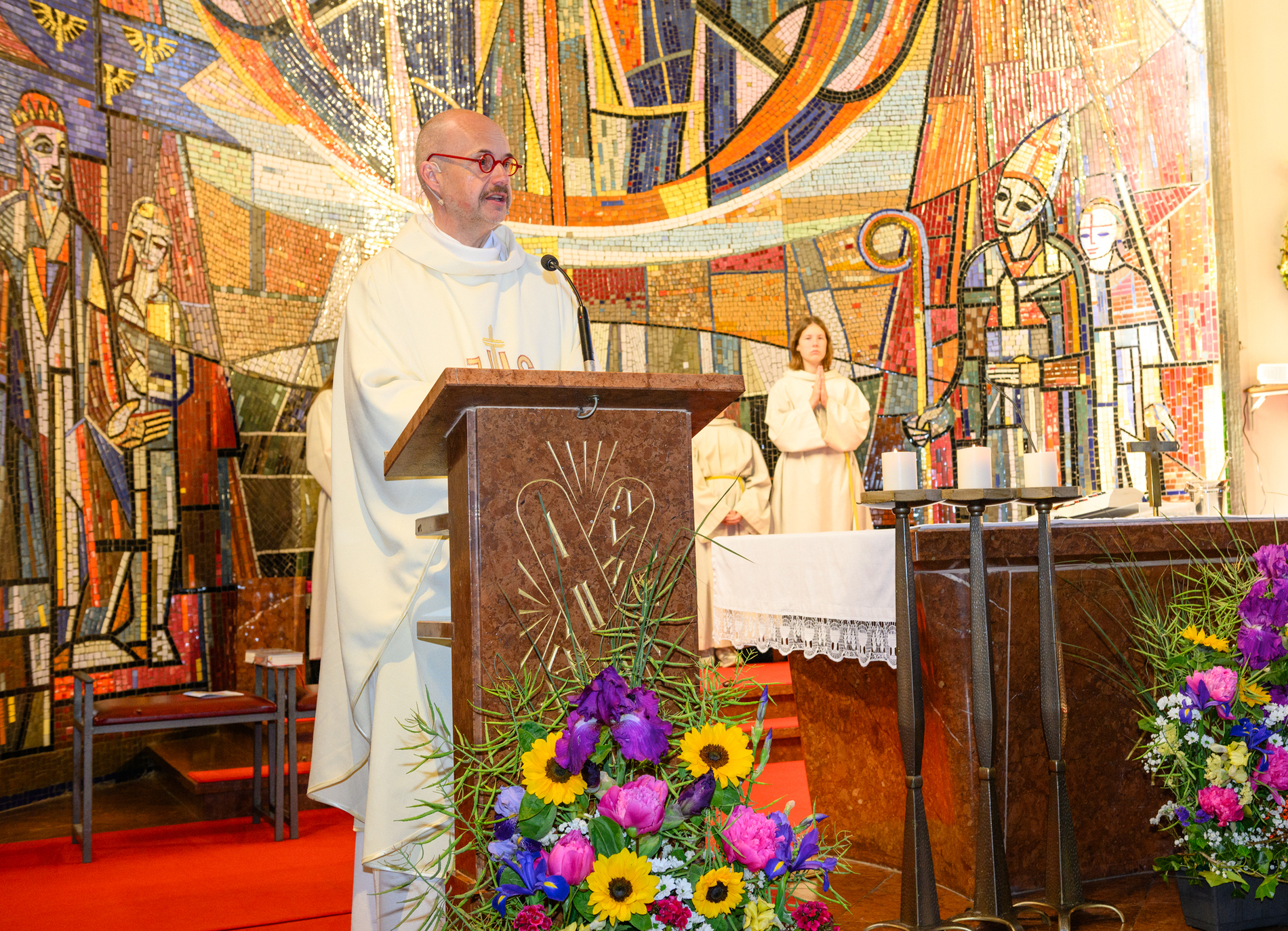 Der festliche Gottesdienst wurde in einer sehr lebendigen und herzlichen Atmosphäregefeiert. Die Kinder gestalteten die Feier aktiv mit, sei es durch das Vorlesen von Texten, das Vortragen von Fürbitten oder durch das gemeinsame Singen. Musikalisch wurde der Gottesdienst vom Lehrerinnenchor begleitet.