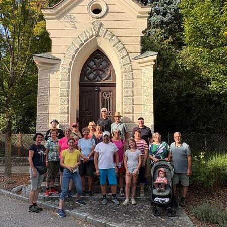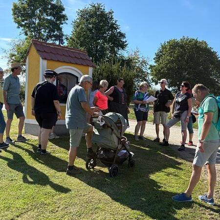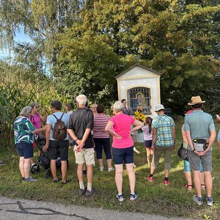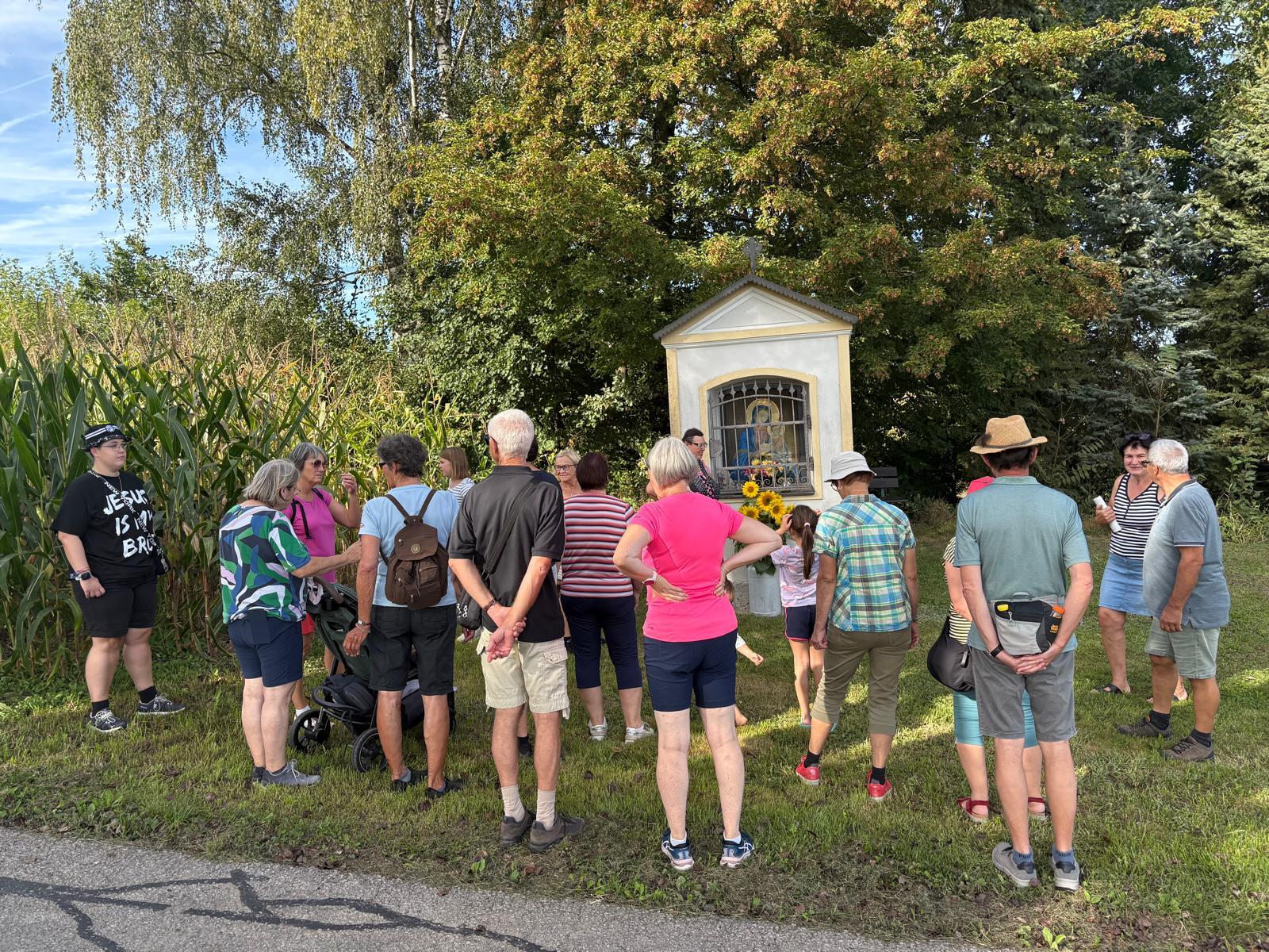 Bei strahlendem Kaiserwetter machten sich 20 Personen auf den Weg mit Start vom Friedenskreuz nach Krügling und zurück in die Stadt. Entlang der Route konnten wir viele Marterl entdecken, zu denen wir interessante und bewegende Beiträge gehört hatten. Dies wurde in einem Buch „Himmlische Oasen“ von Irene M. Weiß verfasst.